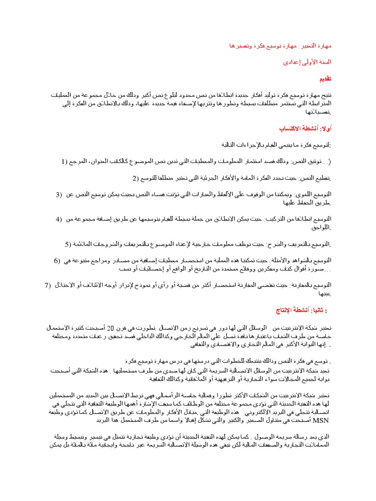 التعبير والانشاء مهارة توسيع فكرة وتفسيرها