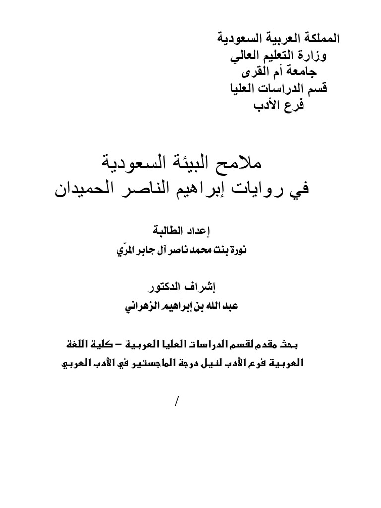 ملامح البيئة السعودية في روايات ابراهيم الناصر الحميدان الرسالة العلمية